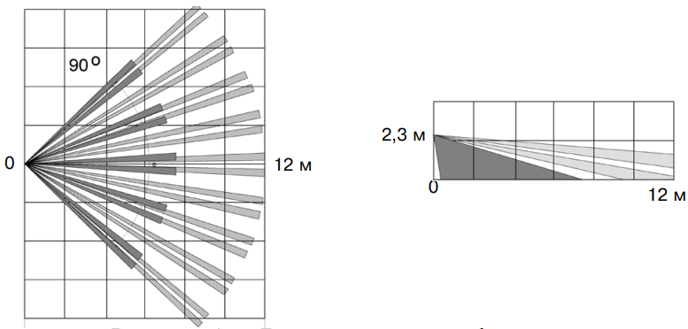 | Угол зоны (Охранные датчики) | 90° объемная |